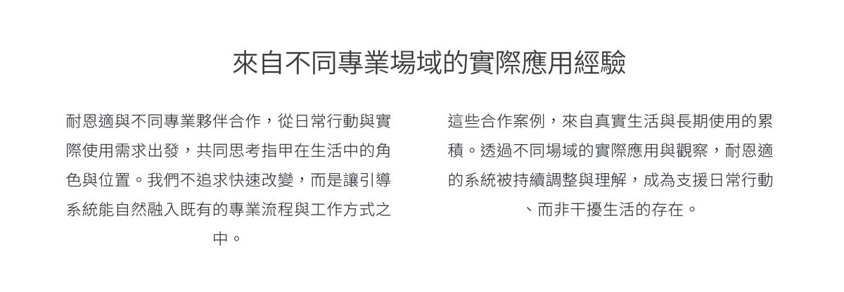 因此,耐恩適並非以單一指甲狀態為出發點,而是回到甲板受力、生長方向與整體結構之間的關係,從預防性與整合性的角度,重新思考問題指甲的引導方式。